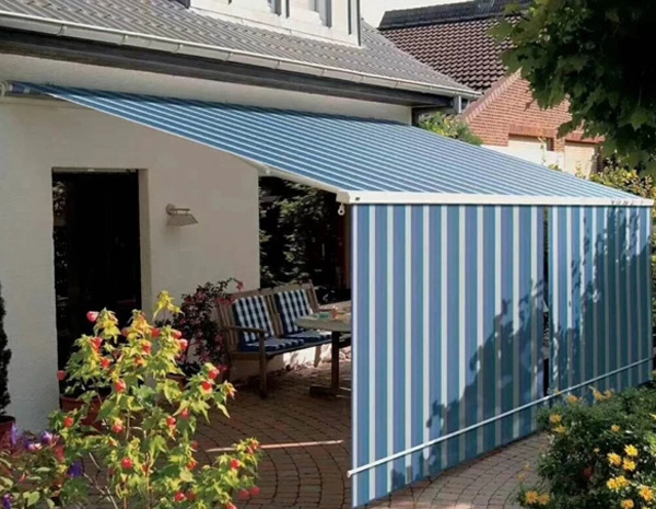 3、曲臂遮陽篷,在遮擋炎炎夏日的同時(shí),能夠使強(qiáng)烈的陽光以漫射光的形式反射入室內(nèi),使室內(nèi)光線明亮而不眩目,并且不影響從室內(nèi)看出的窗外景觀,將人們的生活空間從室內(nèi)延伸到室外,創(chuàng)造出了新的居住空間;
