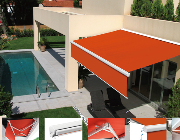 曲臂遮陽篷,使用機(jī)械裝置和曲臂裝置系統(tǒng),在彈簧的作用下,產(chǎn)生伸縮張力,使篷面展開和收縮,整個(gè)曲臂組有臂止動(dòng)實(shí)現(xiàn)8-70度任意精確平行調(diào)整??赏ㄟ^不同傳動(dòng)系統(tǒng):手動(dòng)曲柄操縱、電機(jī)遙控操縱。結(jié)構(gòu)骨架采用高強(qiáng)鋁合金/鋅合金/優(yōu)質(zhì)鋼材/ABS樹脂/聚丙烯PP制成。而螺栓和螺絲均由優(yōu)質(zhì)鋼材制成。最大適用伸出長度為4.0米。專為大面積遮陽而設(shè)計(jì)的時(shí)尚、個(gè)性化產(chǎn)品。整套機(jī)構(gòu)和型材都經(jīng)過加大、加厚的設(shè)計(jì)、制造;對安裝墻體的牢固性要求更高。